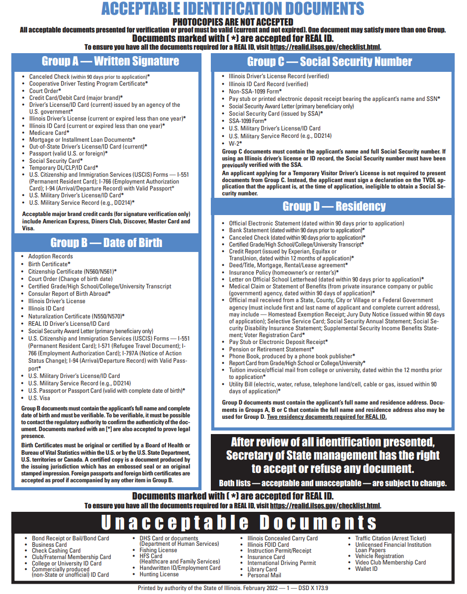 나는 Standard DL/ID Applicant에 해당해서 Group A,B,C,D에 속하는 것들을