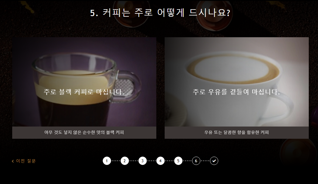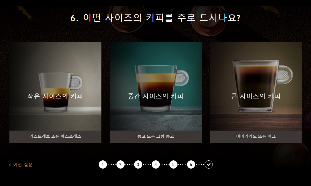 네스프레소 웹사이트에 들어가서 7가지의 질문들을 통해 알아가보려 한다.